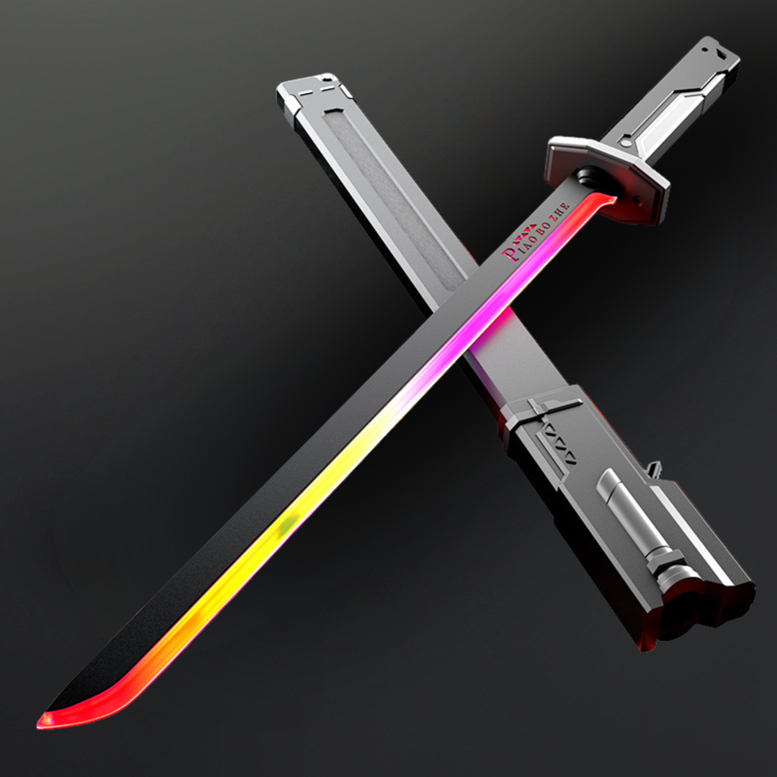 When removing the blade from the sheathe, sparks will show. There is also a steam button that emits out of the Tsuba.